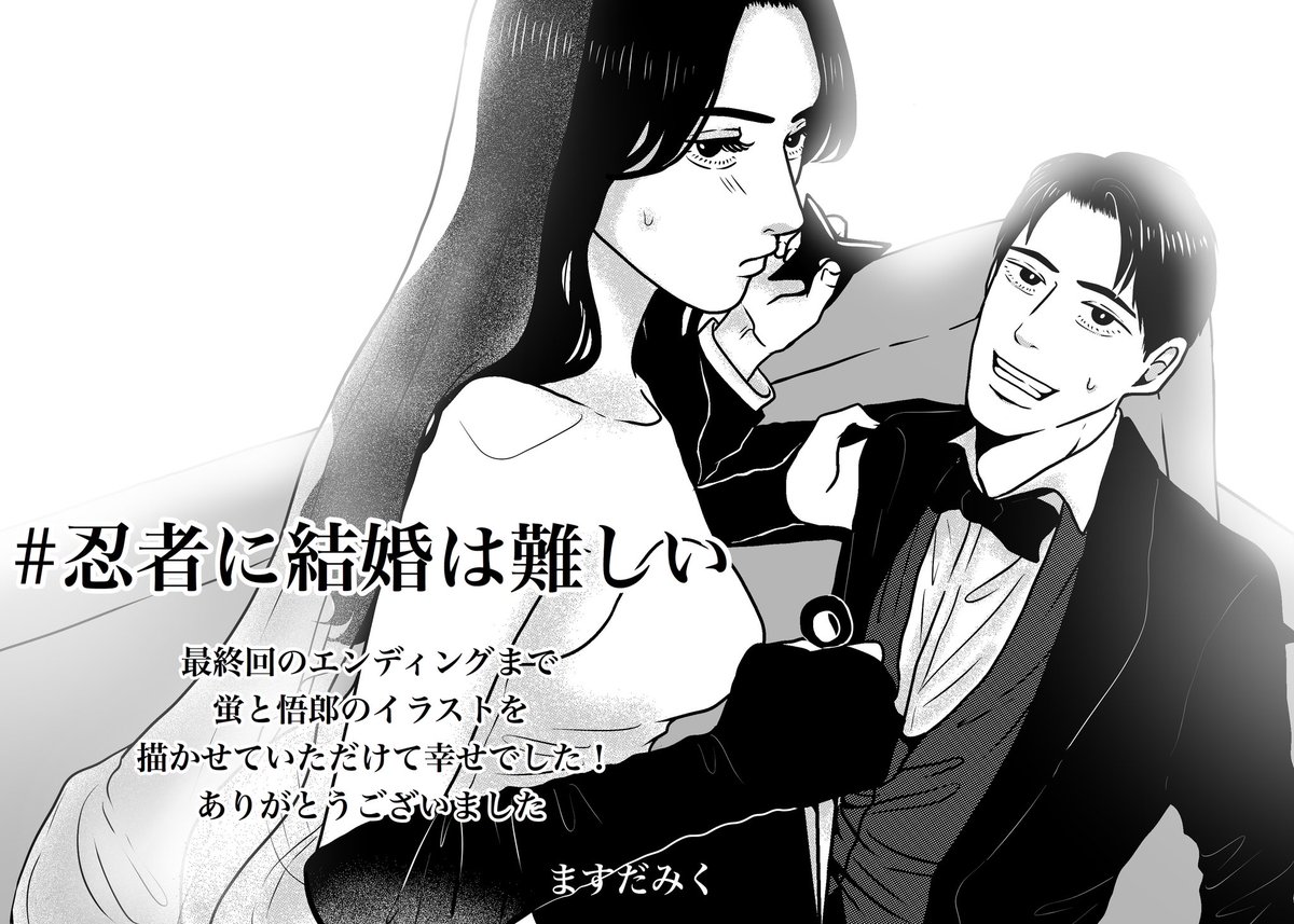 #忍者に結婚は難しい エンディングのお話をいただいてから約半年間、ふたりのお話を描かせていただけて本当に幸せでした。撮影とほぼ同時進行に描いていたので、最後まで不安でしたが、駆け抜けることができてよかったです...!… twitter.com/i/web/status/1…