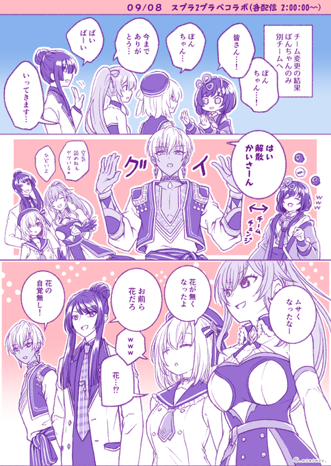 551 4637 プラベコラボ中の好きなシーン。花のあるチーム。 #ぽんとれーと #マル描いてちょんっ #フレン見て #長尾百景 #絵ブラヒム 22/09/19 16:59