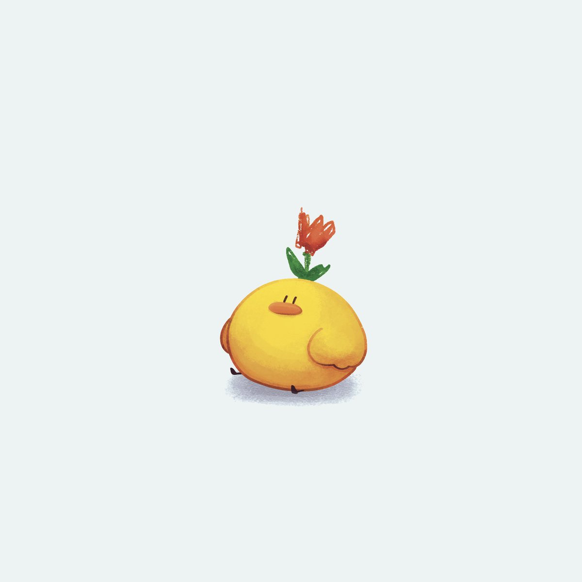 ぽやんとしてたら画風の違う花が生えたトリ #イラスト