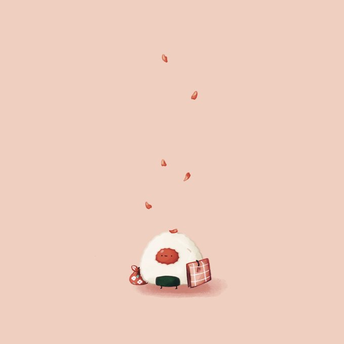 38 345 花見を満喫する気のウメニギリ🍙 #イラスト 23/04/02 18:00