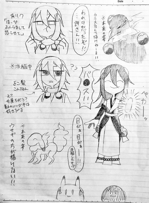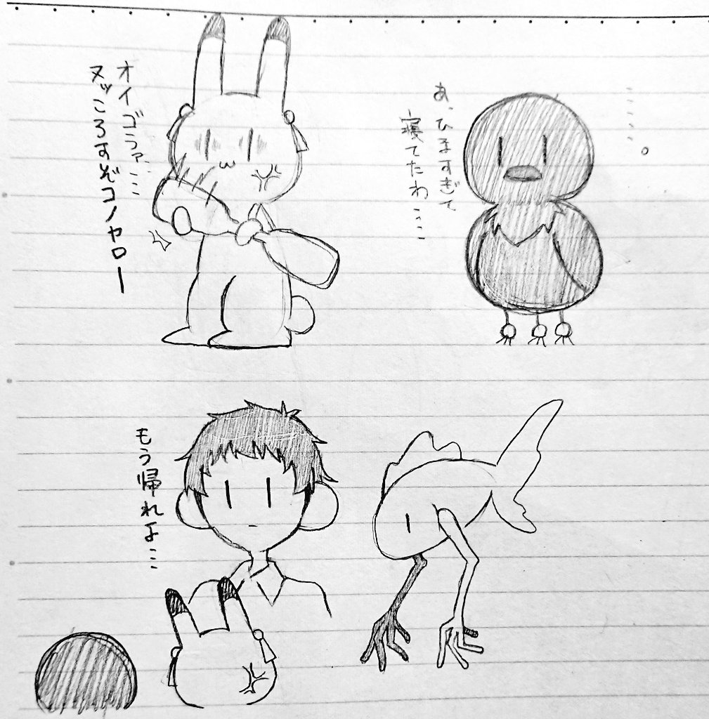 0 7 #イラスト練習中 #イラスト #落書き #擬人化 #妖怪 #玉兎 #金烏 #八咫烏 可愛い 22/06/20 18:04