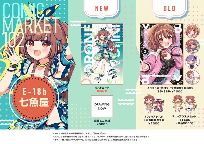 🍋コミックマーケット102 お品書き🍋 日時:8/12 配置:東Eー18b 七魚屋 新作ポストカードを無料配布します🥐 色紙の詳細はTwitterをチェックしてね👀✨ 🔽通販はコチラ melonbooks.co.jp/circle/index.p… #C102 #C102お品書き