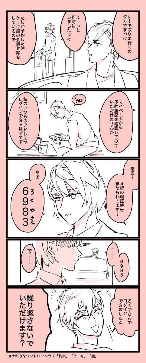 #ナギみなワンドロワンライ 「約束」「ケーキ」「鍵」 遅刻すみません 多分普段からこの4桁にしてる