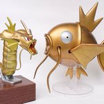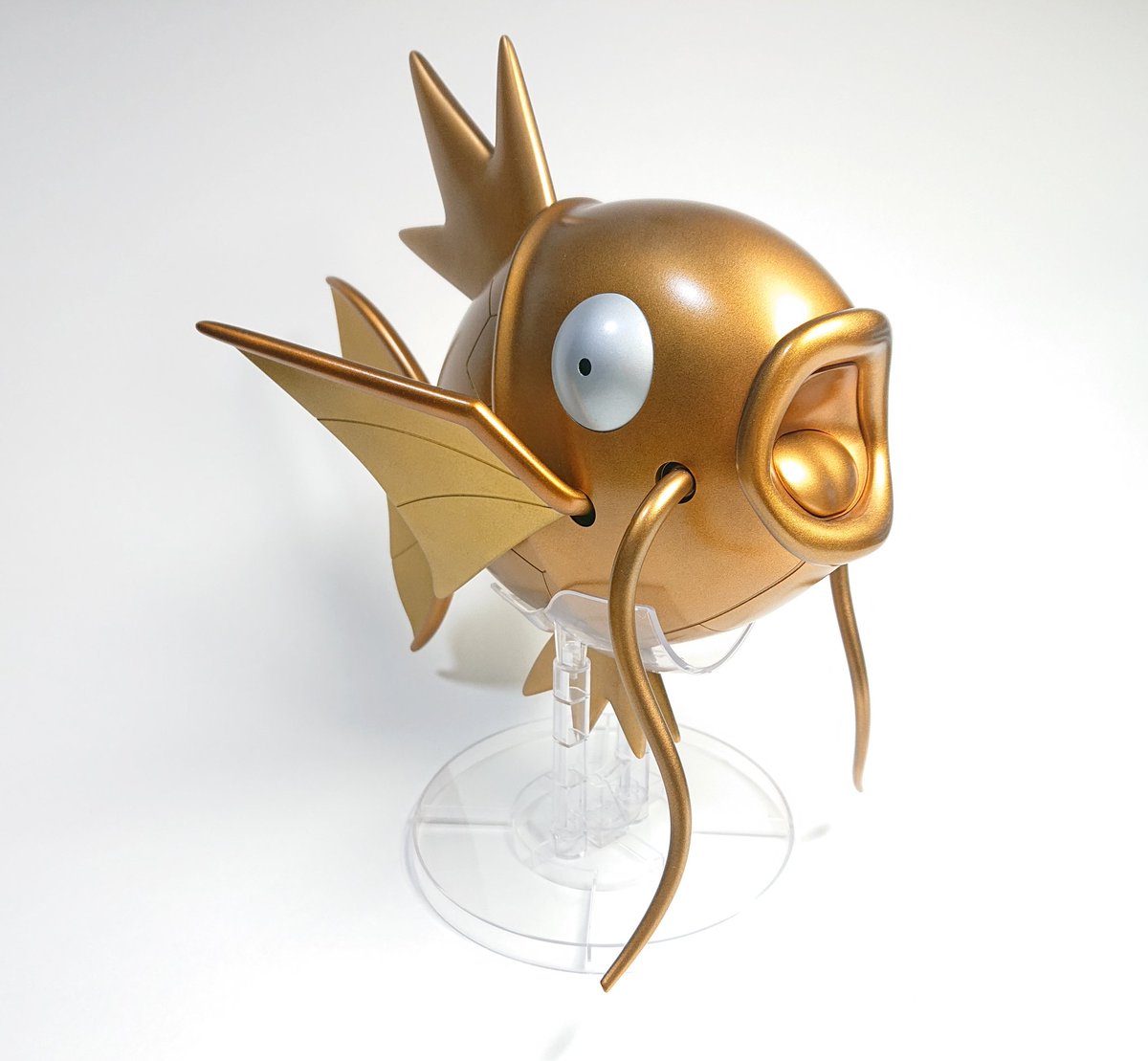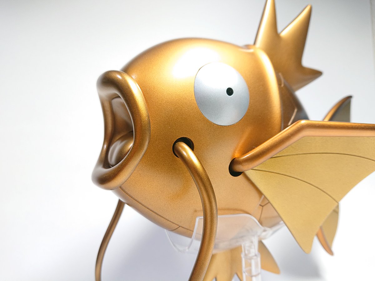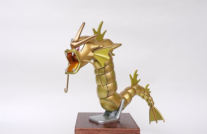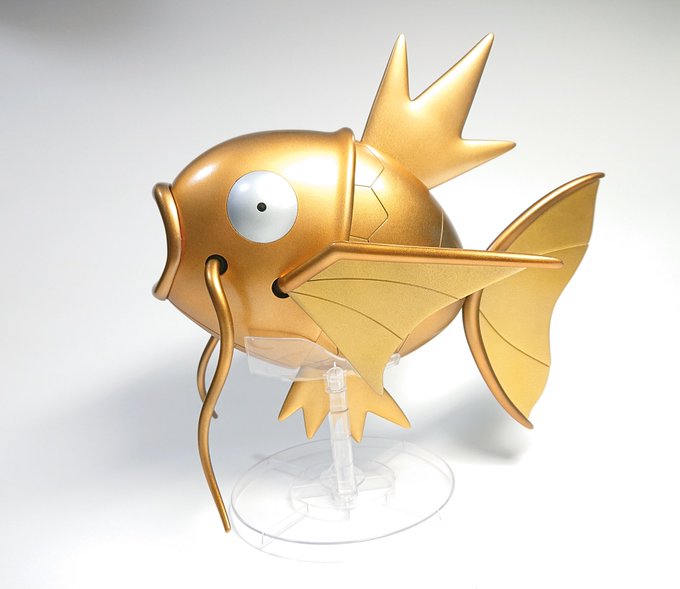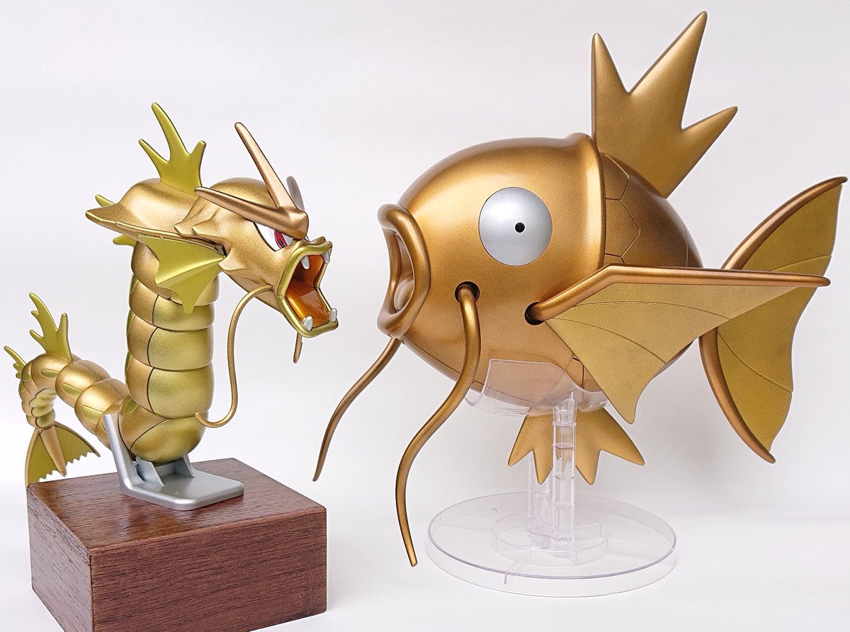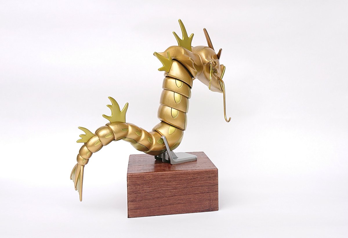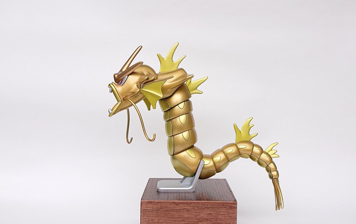 ポケプラ ギャラドス完成しました!! 以前作った金色のコイキングに合わせて、こちらも全身金色にしました。 スターブライトゴールド・スターブライトゴールドプラス・キャンディ塗装したブライトシルバーで塗っています #今月作ったプラモ晒そうぜ