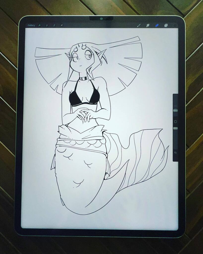 Here’s a #mermay post (possibly my only one!!) I’ll hopefully be able to add a splash of colour on it tonight. #characterdesign #mermaid #art #digitalart #illustration #lineart #procreate instagr.am/p/CrvXljEKPid/