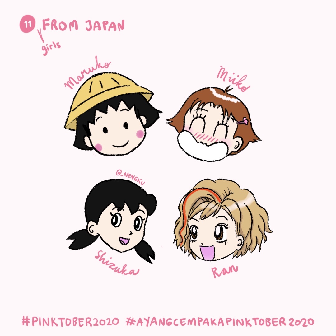 11. (Girls) From Japan 👧🏻🌸 #inktober #Pinktober #pinktober2020 #ayangcempakapinktober2020 #chibi #maruko #kocchimuite #miiko @marimiiko #kotobukiran #manga #artidn