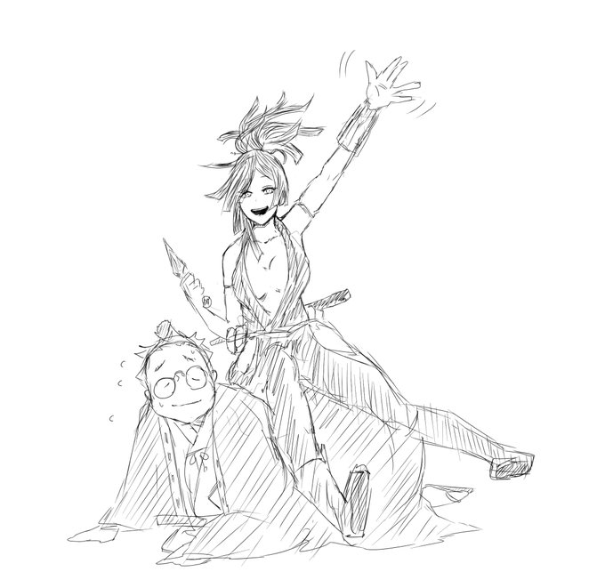 #地獄楽ファンアート #地獄楽 SSR画眉丸 スキル忍法:火法師 ソシャゲ風に描いてみましたw