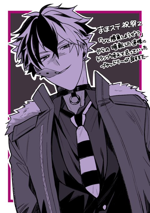 ■まほステ祝祭2備忘録絵■ ブラッドリーがオエとミスラに「一勝負しようぜ?」って言った後、舞台から捌ける時に暗転した瞬間あたりでブラッドリーがトランプを口に咥えながら去っていったのがめちゃくちゃ良かった…🙏