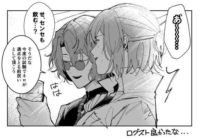 382 2933 ネロが試験勉強をせずに昼間から酒飲んでたの、きっとファウストに多分バレるんだろうな (まほやくログストネタ) 22/07/25 23:36