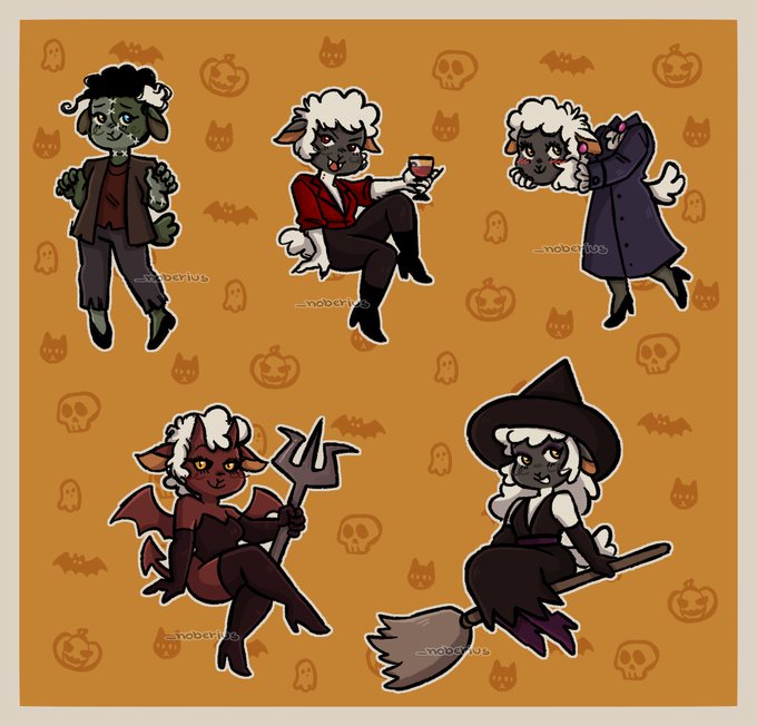 nob's prepared for halloween ๐ (couldn't choose just one costume for her so I made them all) #furryart #furryartist #halloween