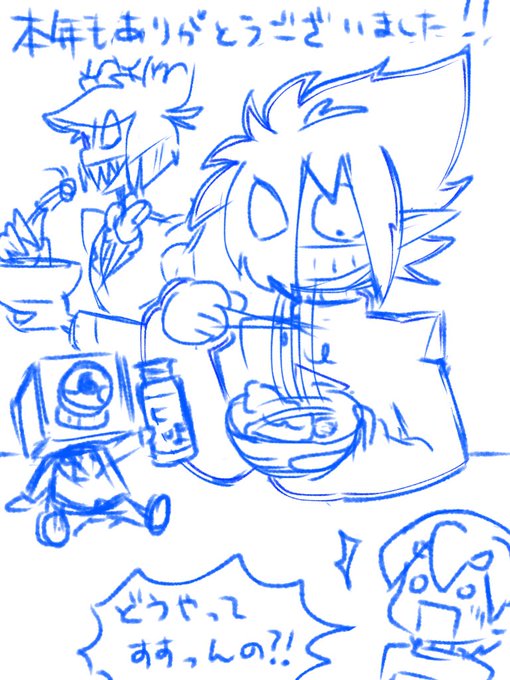 描き納め!年越し蕎麦職人🦌さんとお客さんな👁ちゃん