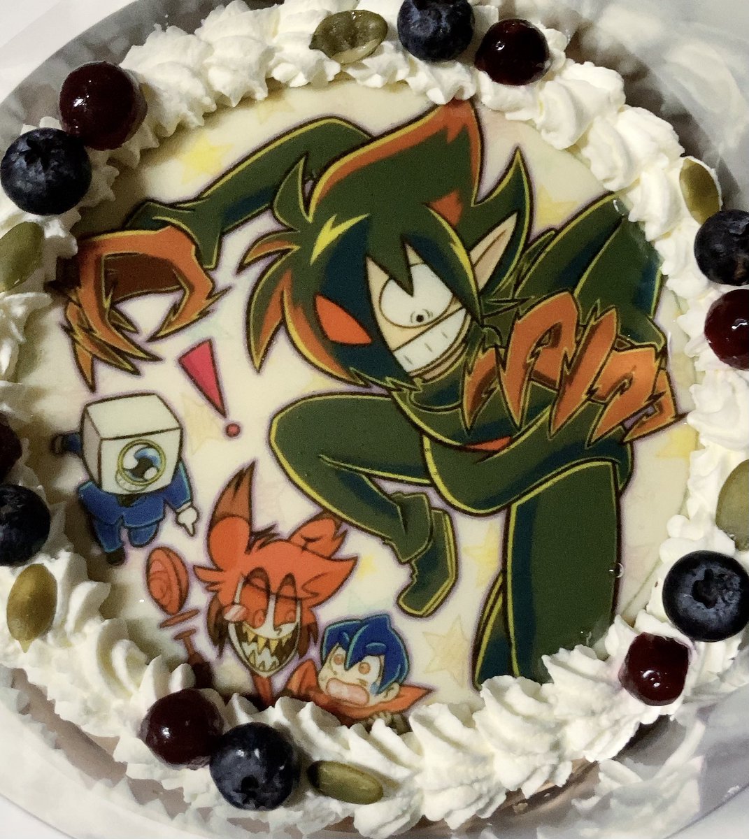 自分が描いたイラストをプリントしてくれる(プリント部分はチョコレート)ケーキ屋さんで今年も注文しました!食べるぞ〜!! (2枚目のが元絵です)