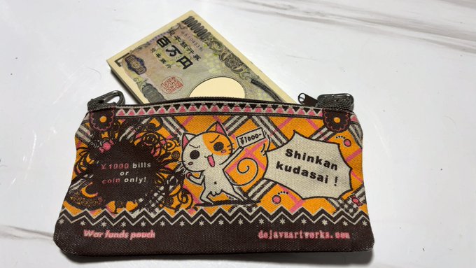 #comitia144 で再販! 『軍資金ポーチ』は肩から掛けるストラップ付き。 千円の札束を入れて携帯しよう。 サークル前でサッと取り出し「どうだ明るくなったろう」と言えば新刊がすぐ手に入るよ。