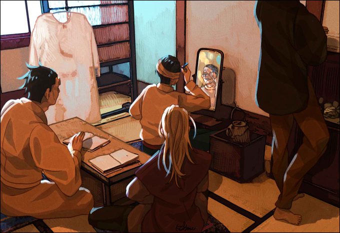 27 148 #ゴールデンカムイ版深夜の真剣お絵描き60分一本勝負 お題ゴートリなので☺️☺️☺️ 22/08/07 23:02