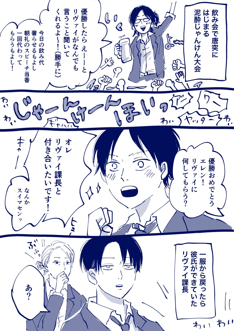 毎日kjさんに負けるからじゃんけんバリ強くん描きました(リヴァエレ)
