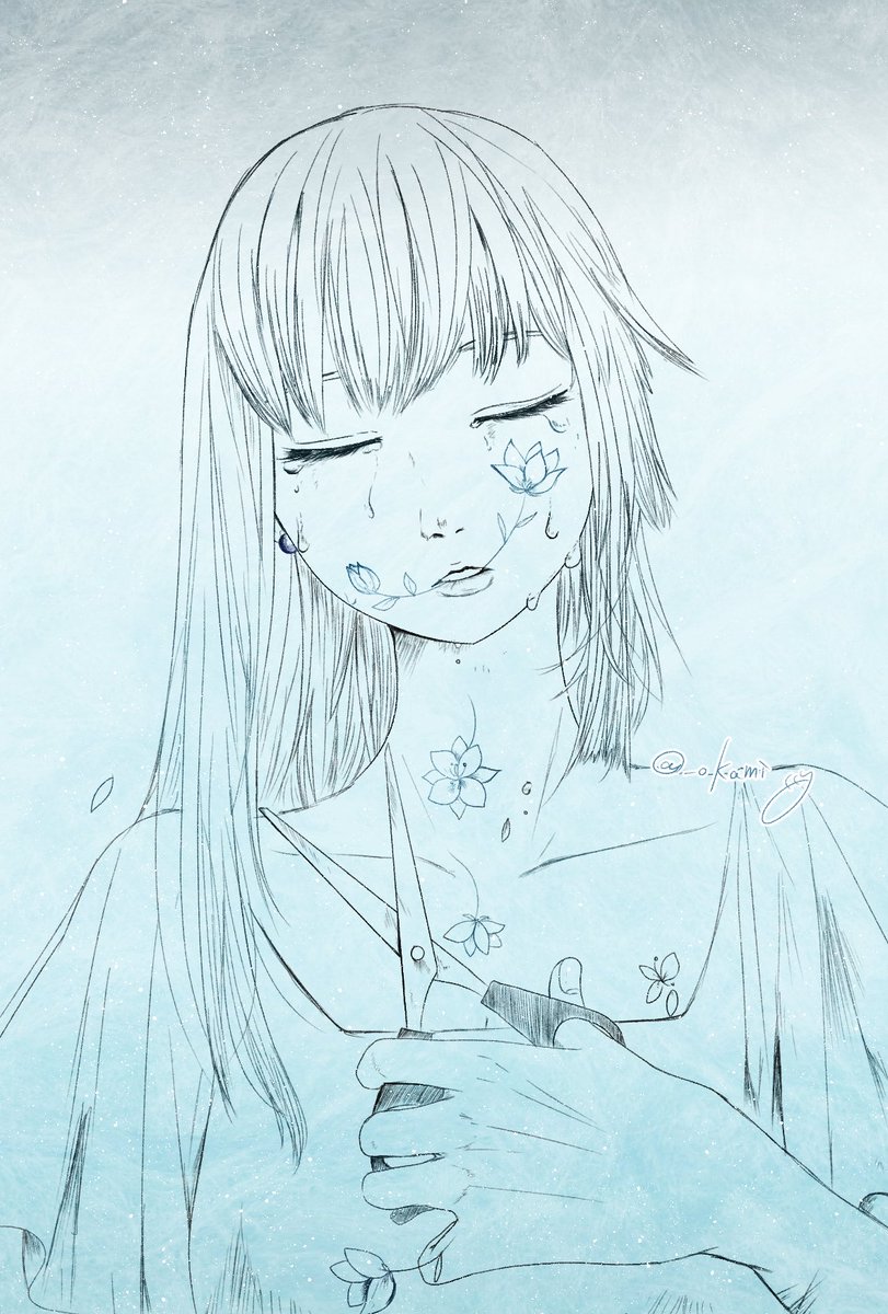 前髪を切ったって、 慰めてくれる本を読んだって、 暖かい言葉が散りばめられた音楽だって、 涙は止まってはくれないんだ。 #イラスト #イラスト依頼受付中