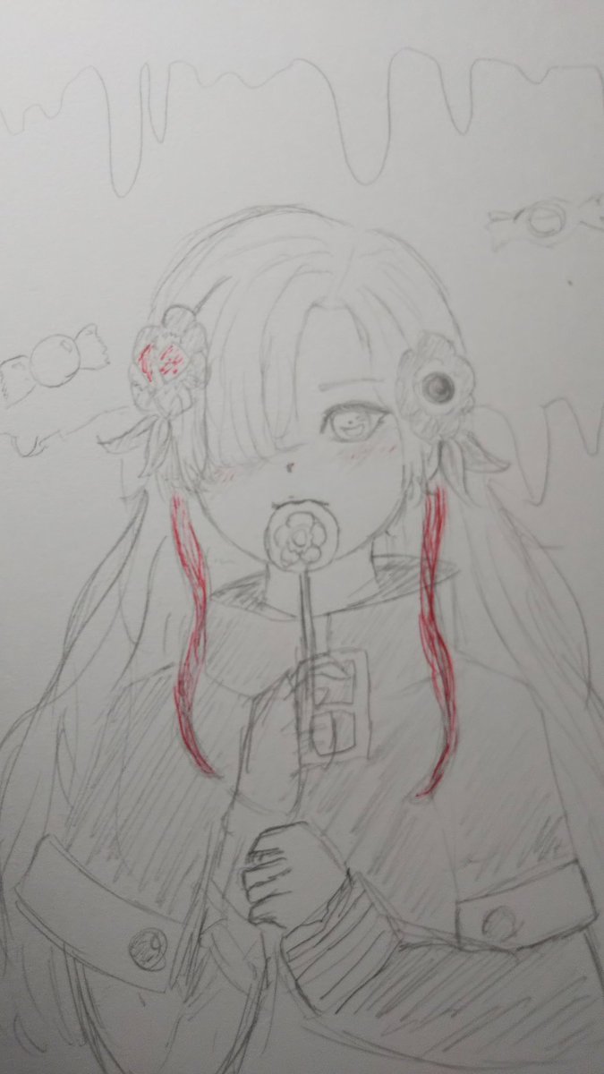 キャンディライブの曲のCD聴きながら勉強してたら、とても描きたくなってしまった情緒ちゃん。もとはキャンディライブのorieさんの絵です!落書きなんで低クオリティです #ヰ世界情緒 #ヰ世界情緒美術部