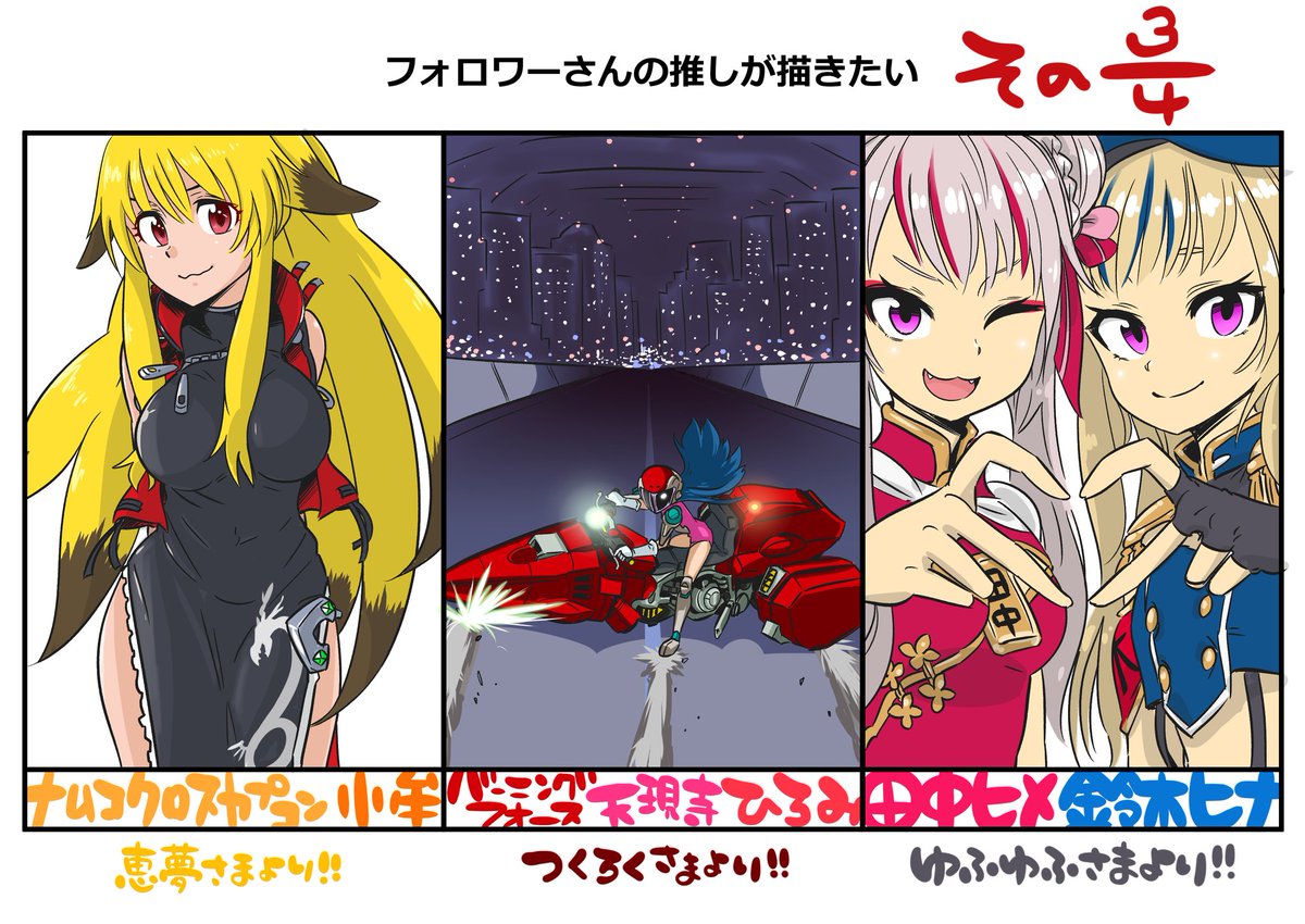 #フォロワーさんの推しが描きたい のヨンブンノサン!今回は初めましての作品ばかり😆 シャオムウさん全然似ないっ…髪の毛が尻尾っぽくて素敵っ🦊 田中と鈴木は(言い方)ドロワーズ見せ子(言い方)がヒメで?コマネチまな板がヒナなんですね!(言い方) 天現寺さん…どうしてもやりたかったw満足w