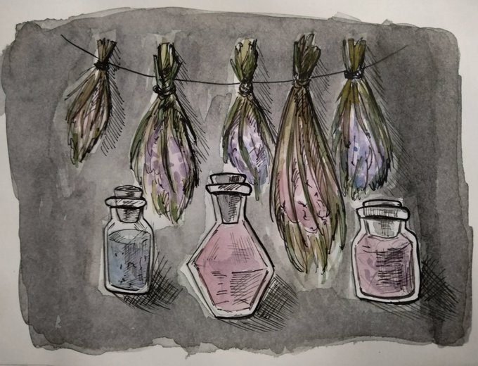 witch's supplies of herbs and tinctures #inktober2021 #ink #watercolor #halloween2021 #smirnovschool