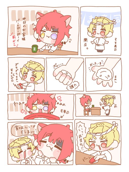 遅れましたが、莉犬くんお誕生日おめでとうございます🎉 やりとり見て思いついたので🍣 そまくんが握ったお寿司は大きくて密度高そうだし、莉犬くんは美味しく食べてくれそう₍ᐢ..ᐢ₎💭(イメージです) #りいぬぎゃらりー #すとぷりぎゃらりー #KnightArt #そま #そうまくん