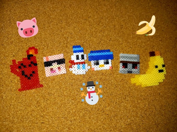 おんおらめんとその相棒🍌☃️🐷 【マイクラ】アイテムをペットにできる世界でマインクラフト! 🍌が可愛すぎたのでアイロンビーズで作ってみました。 ぜひとも相棒と一緒にエンドでPvPしてほしい.... #はよ見ろやあ #見るかもわからん #誰でも見れますねぇ