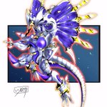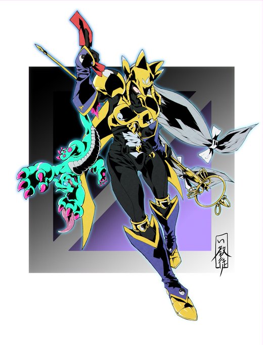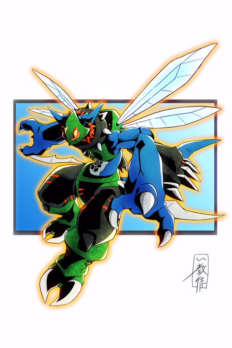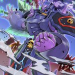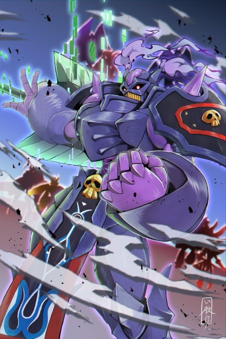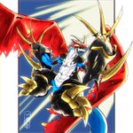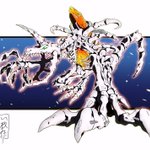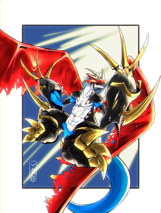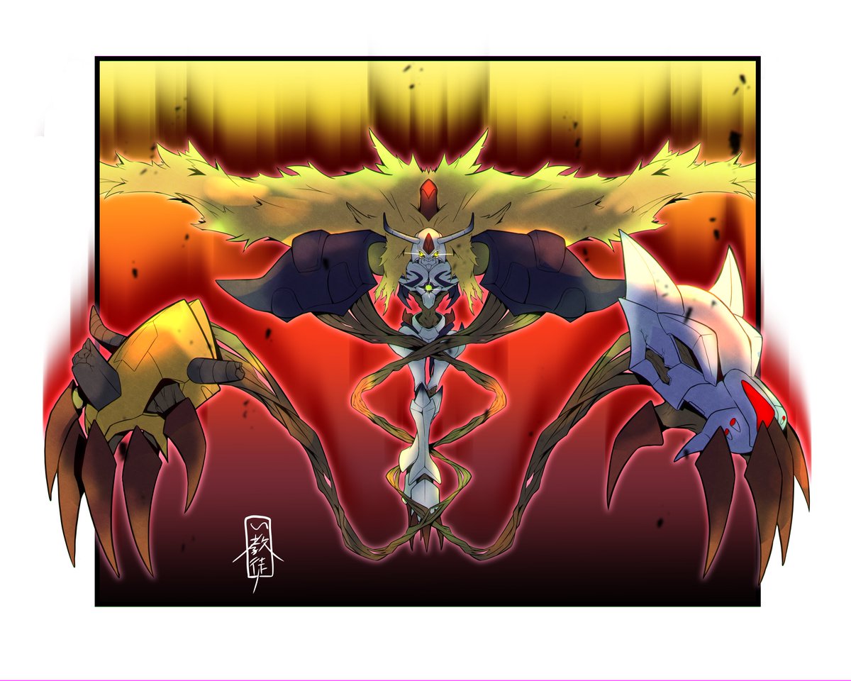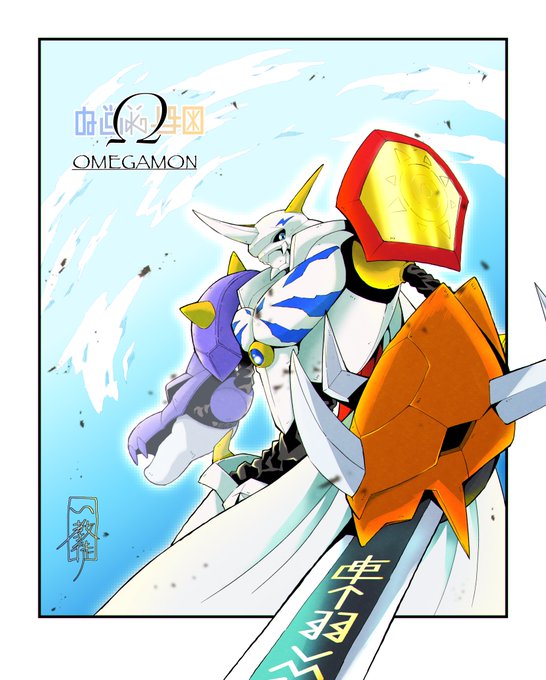 おにくちャん(@onikuyasan1224) さん主催の #リメイクしようデジモンイラスト交換会 にて、チャリ(@starodinblack)さんとイラストを交換、オメガモンをリメイクさせていただきました! #デジモン #digimon ←左:い教徒 右:チャリさん→