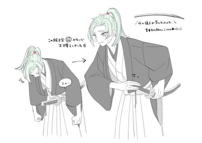 うすみどりっていうくらいだから緑い膝丸くんのイラストいっぱいあるはずって思ったんだけど以外と緑なかった…! #みどりの日なので緑色の画像を貼る twitter.com/i/web/status/1…