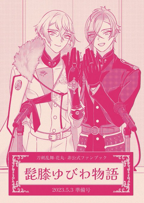 6/25(日)JUNE BRIDE FES 2023 千夜に想いし愛の源 東5ひ49bにスペースいただきました。花丸🌙の巻のパラレル設定で、兄者の軽装の指輪についてわちゃわちゃする髭膝の漫画(A5/42p)を頒布予定です。よろしくお願いいたします!(1/2)