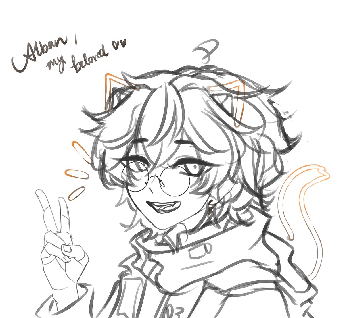 unfortunately, I won’t have time to line/colour/shade it properly this week because of exam study, so have messy 3AM colouring instead! (+ a background for once heheh >:)) #AlbanKnoxArt