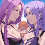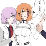 このダブル桜ちゃんっぽい子に挟まれてる慎二っぽいやつ誰よ みんな誰よ!!!!!!!!!! #FGO