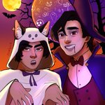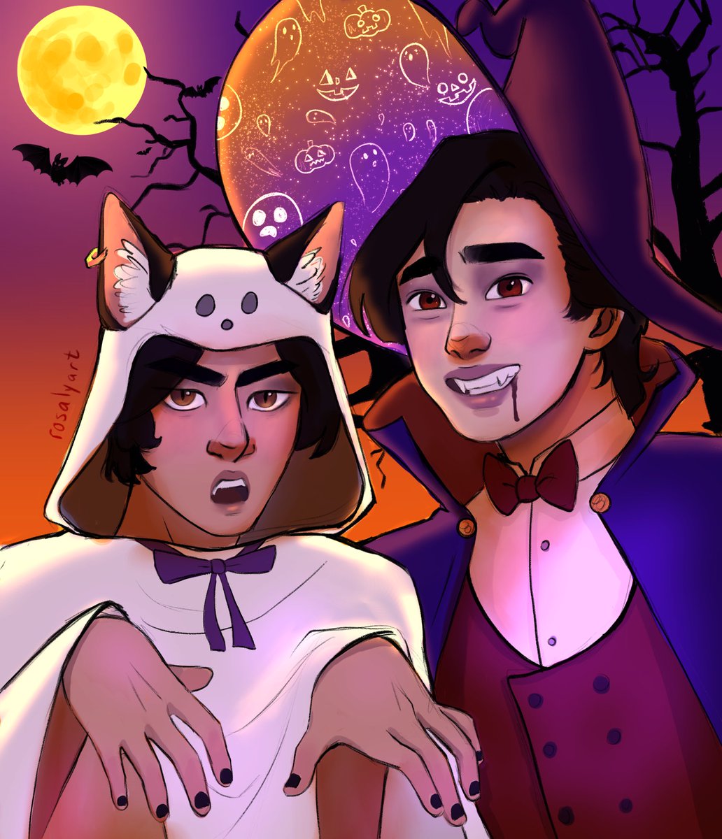 Witch Hyungwon and cat Changkyun are a Vampire and Ghost for Halloween this year 🧛🏼👻 #MONSTAX #monstaxfanart