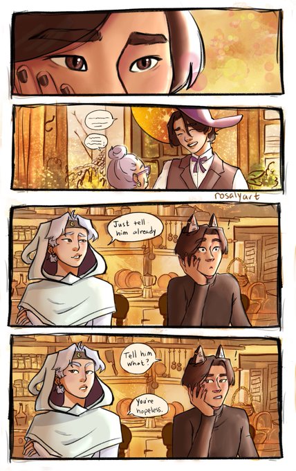 In my AU they don’t know Changkyun at this age! He is still tiny. Hyungwon and Minhyuk are apprentices which explains the different outfits~ They haven’t come into their own yet. #hyungkyun #minhyuk #monstaxfanart twitter.com/_rosalyart/sta…