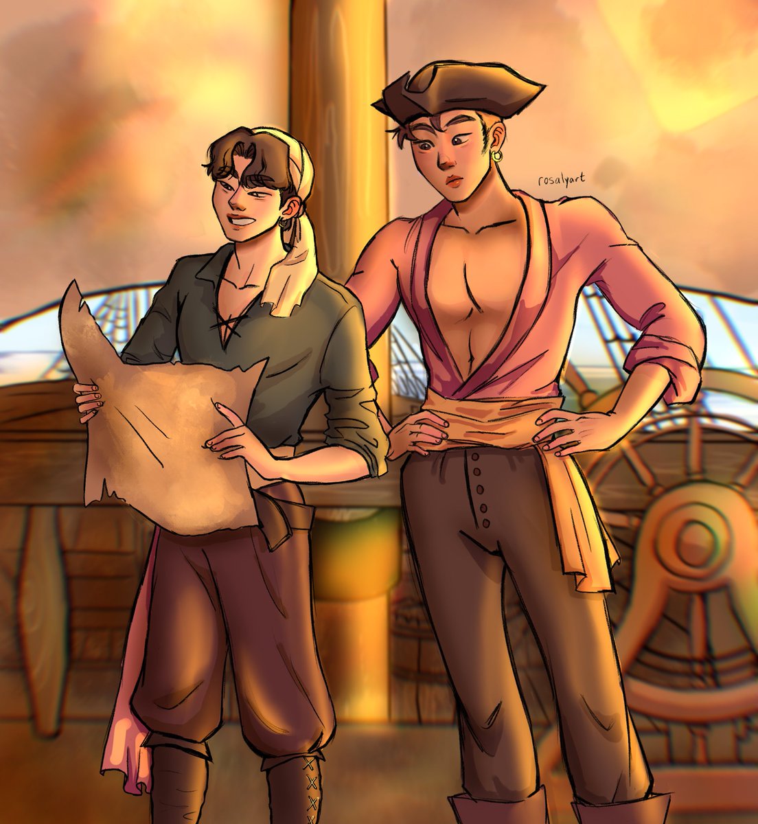 Ahoy! Captain Shownu and quartermaster Kihyun 🏴☠️ Another AU? Yes. I do not have self control 😐 #kihyun #shownu #monstaxfanart