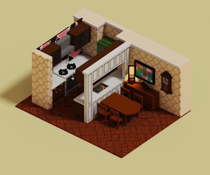 Forger's Living and Kitchen Area ✨✨✨ It's been a year or two since my last voxel art I did what I could 🥲 #スパイファミリー #SpyxFamily #voxelart