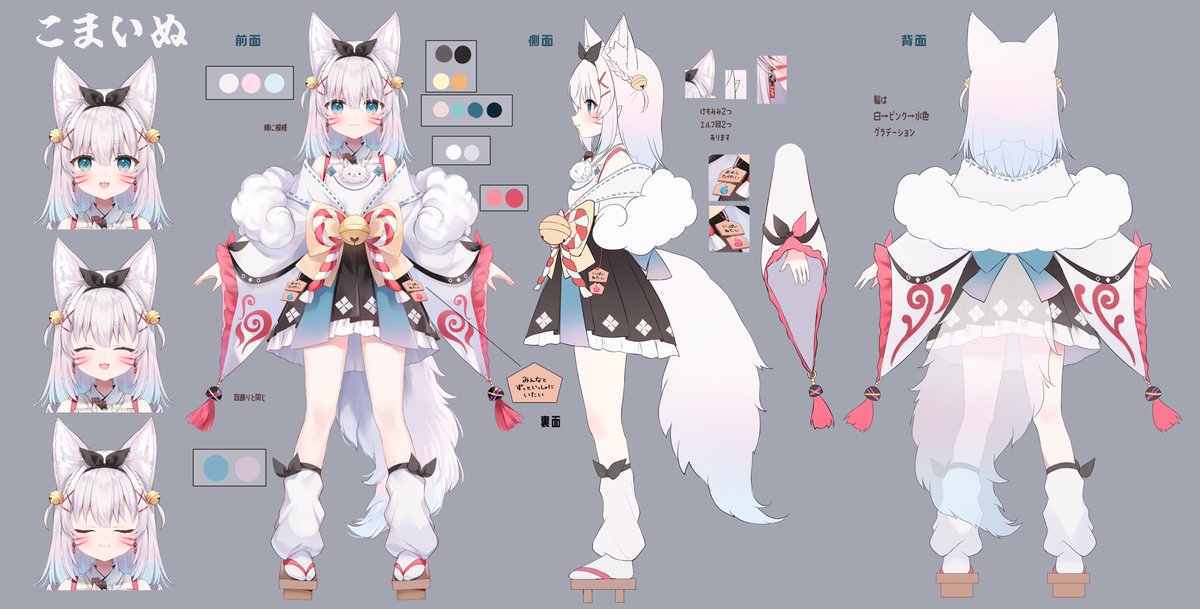 120 638 この度新しい娘のこまいぬちゃん【@komainu_reality 】の新モデルデザイン・3D用3面図担当させていただきました! 犬系ロリめっちゃかわいいです꒪꒫꒪)❕ ぜひ仲良くしてあげてください🫶 23/07/17 21:49