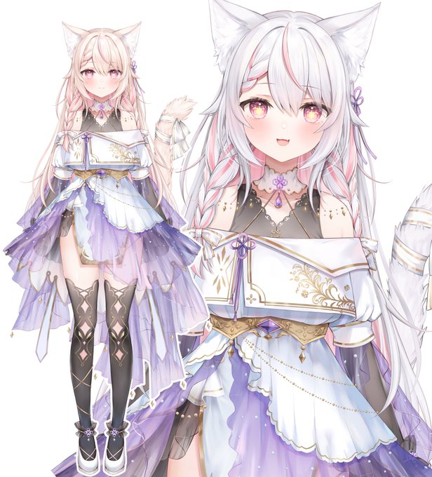 周防パトラ様(@Patra_HNST ) の新衣装モデルのデザイン・イラスト担当させていただきました! 白基調のファンタジー系衣装です! 新しいお姿もどうぞよろしくお願いします🙏✨ #周防パトラ新衣装
