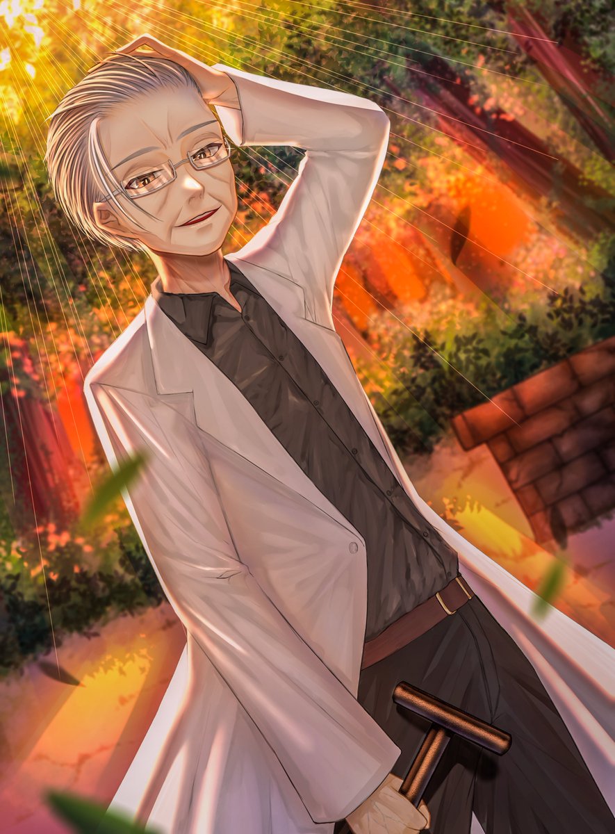 御巫じろ…… キャラデザ案の青みがかったじろさんがめちゃくちゃ好き。本編ではちゃんと(?)おじいちゃん(?)しててシリアスなのに情緒が反復横跳びでした ありがとう次郎………🙏 #LIFE0イラコン #セヴンデイズ