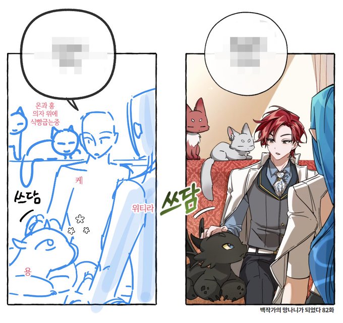 <백작가의 망나니가 되었다> 시즌2 콘티 작업물들 몇 점 올려봅니다. 용용이(?) 나뭇잎 떼 주는 상황은 제가 임의로 추가한 건데 좋아해 주는 분들이 많아서 뿌듯했어요.😊 page.kakao.com/home?seriesId=…