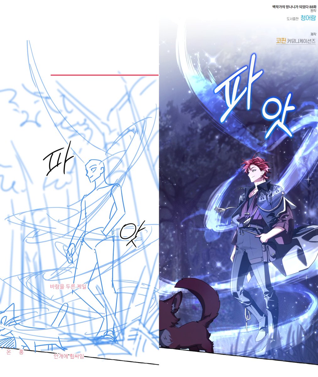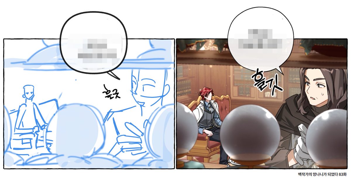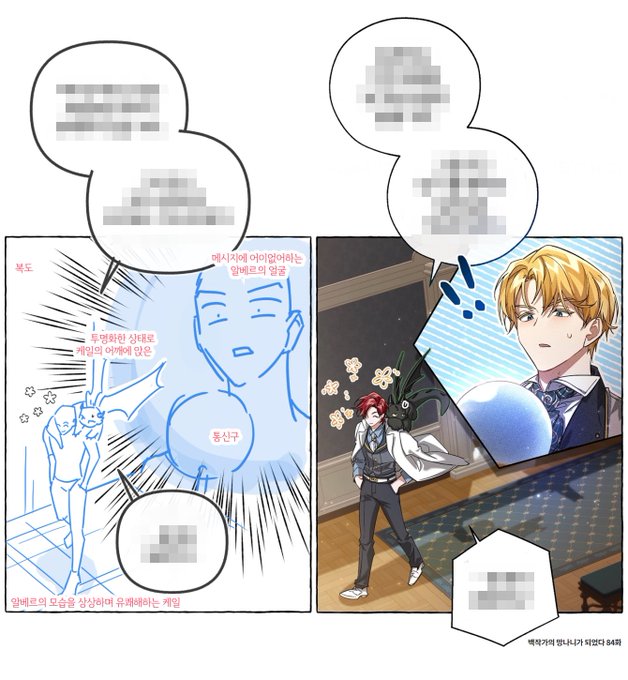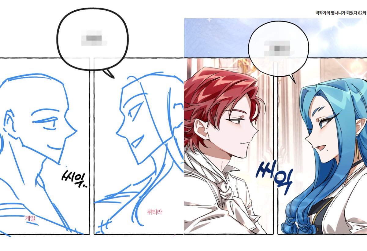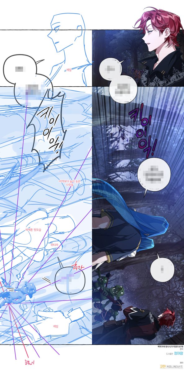<백작가의 망나니가 되었다> 시즌2 콘티 이것저것 모아서 업로드~ 고래족 남매 디자인을 모르고 작업했었는데, 업로드 된 것을 처음 보고 너무 아름다워서 기립박수를 쳤던 기억이 있네요.🥹🖤 page.kakao.com/home?seriesId=…
