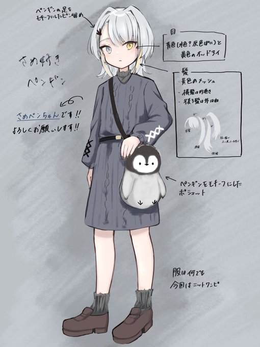 オリジナルキャラ作ってみました。 さめペンちゃんですよろしくおねがいします〜! #新年早々の創作クラスタフォロー祭り #イラスト