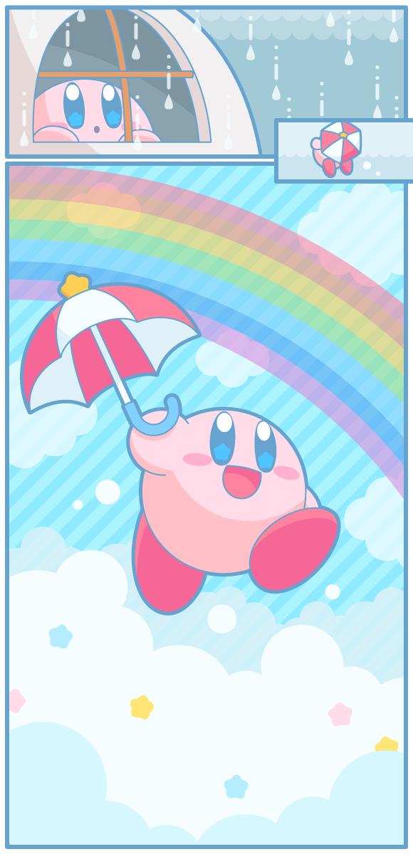 くものうえは あおいそら! #カービィ版深夜のお絵かき60分一本勝負 ちょうど2年前の梅雨シーズンの作品「すかい◎ぱれ~ど!(twitter.com/_saolin_/statu…)」の絵柄で!