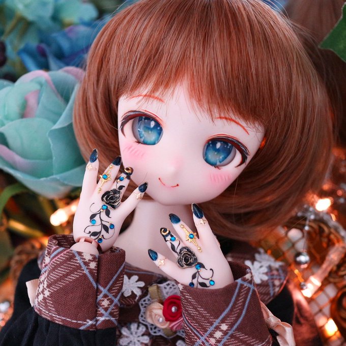 可愛いのが出来てしまった! ブラックアリスと名付けよう❤️ 今回はネイルも全部アートして凝ったので満足✨ 準備出来次第ヤフオクに出品します😃 #MDDはいいぞ #ドールオーナーさんと繋がりたい