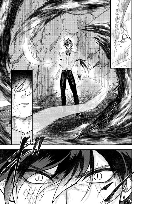 2462 16.5K 魈と鍾離がなんか戦ってる漫画です… (全11P) ※先生龍化しかけ+自我喪失 ※突然始まる ※個人的アクション練習漫画 (1/3) 23/07/06 20:08