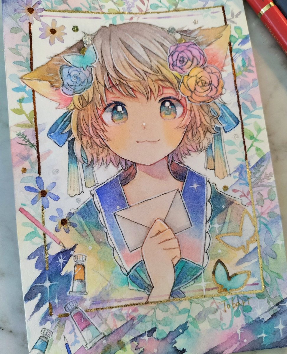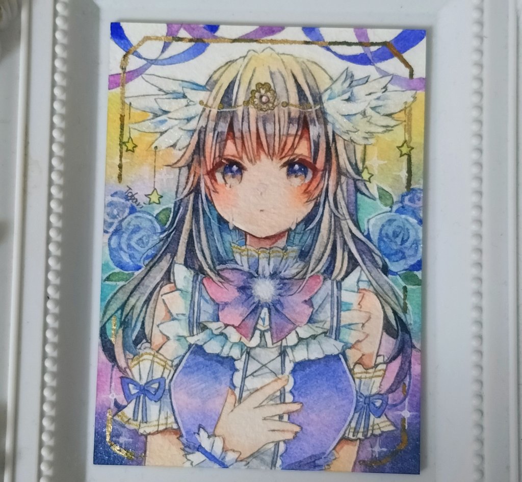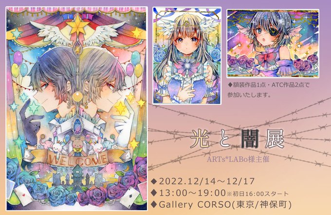 【お知らせ】 ★ARTs*LABo様主催、光と闇展にA4原画額装作品1点、ATC作品2点で参加いたします。 🦋会場:Gallery CORSO(東京神保町) 🦋会期:12/14(水)~12/17(土) 🦋詳細→creatorsbank.com/ARTs_LABo/even… 光の幕開けを意識しながら絵を描いていました。 会期中、どうぞ宜しくお願いいたします。 #ARTsLABo