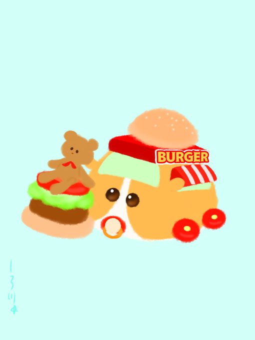 40 208 ぷぅぅぅぅぅぃ ハンバーガーのぬいぐるみ&🧸とで遊ぶ(ベビー)ハンバーガーモルカーちゃん #モルカーファンアート 22/05/12 13:15