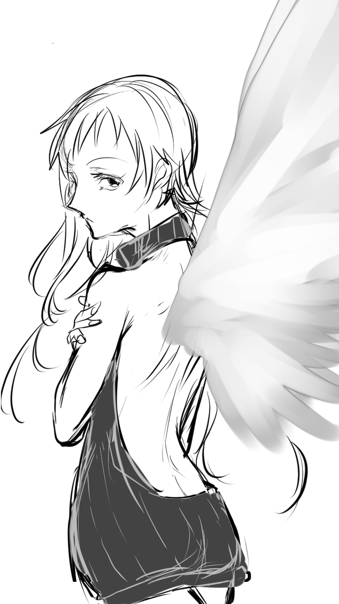 #rkgk これは童貞をころすセーターって言われてる服、あれ有翼人種とかにはちょうどいいんだろうな……って頭に浮かんだのをそのまま落書きした何か