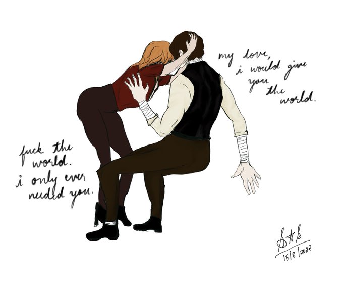 its done! 'eiselcross is for lovers', inspired by the style and a scene in Howl's Moving Castle because howl and Sophie are OG. #essekthelyss is @matthewmercer's DMPC and #calebwidogast is @VoiceOfOBrien's PC, from @CriticalRole #CriticalRole #criticalrolefanart #shadowgast