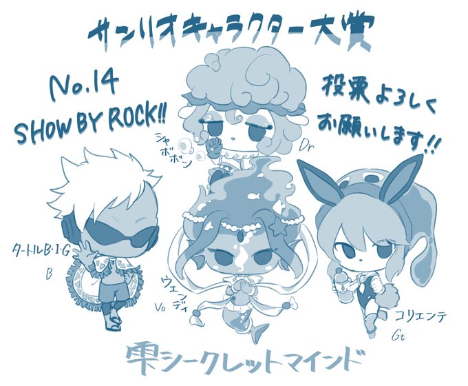 サンリオキャラクター大賞、本日最終日!投票〆切は17時までです!あいことば入力もまだ間に合います!! No.14のSHOW BY ROCK!!に投票お忘れなく…! ranking.sanrio.co.jp/characters/sho…