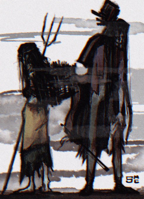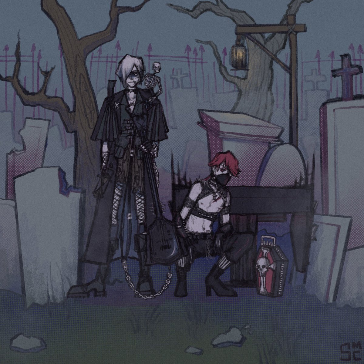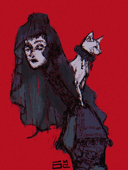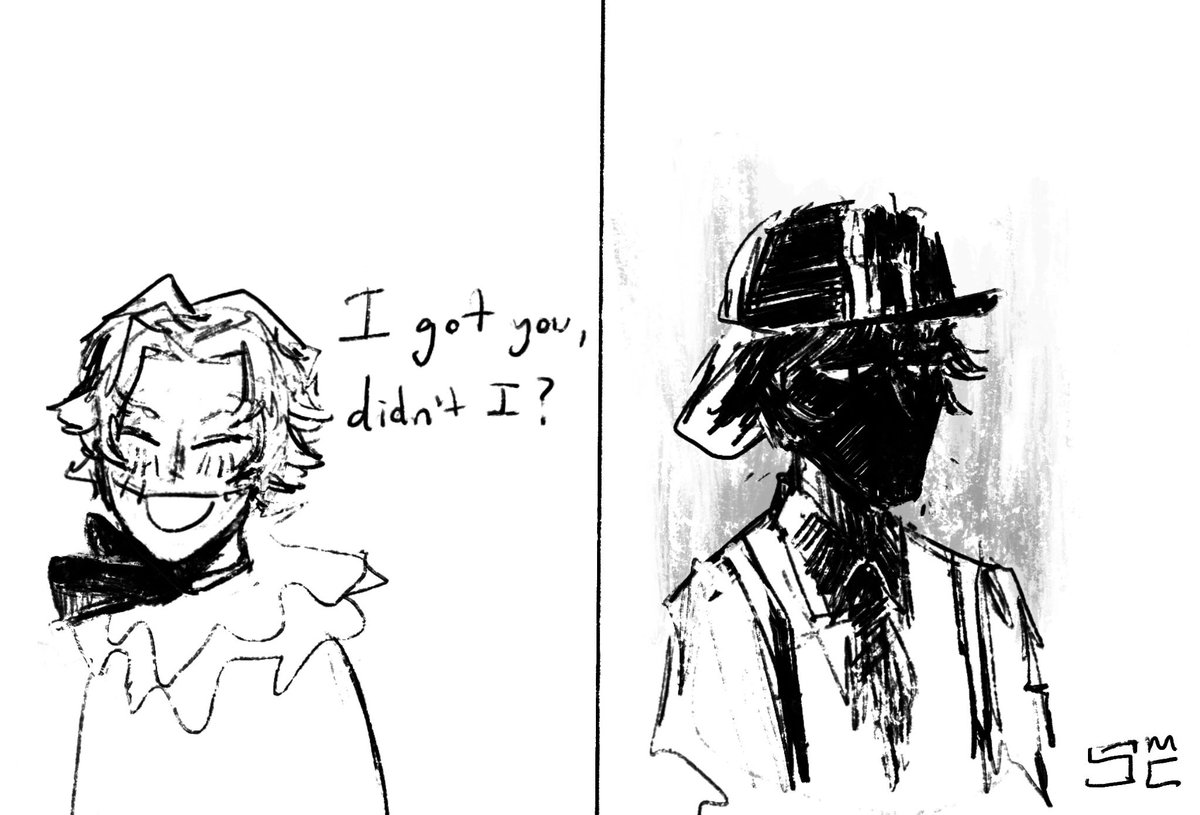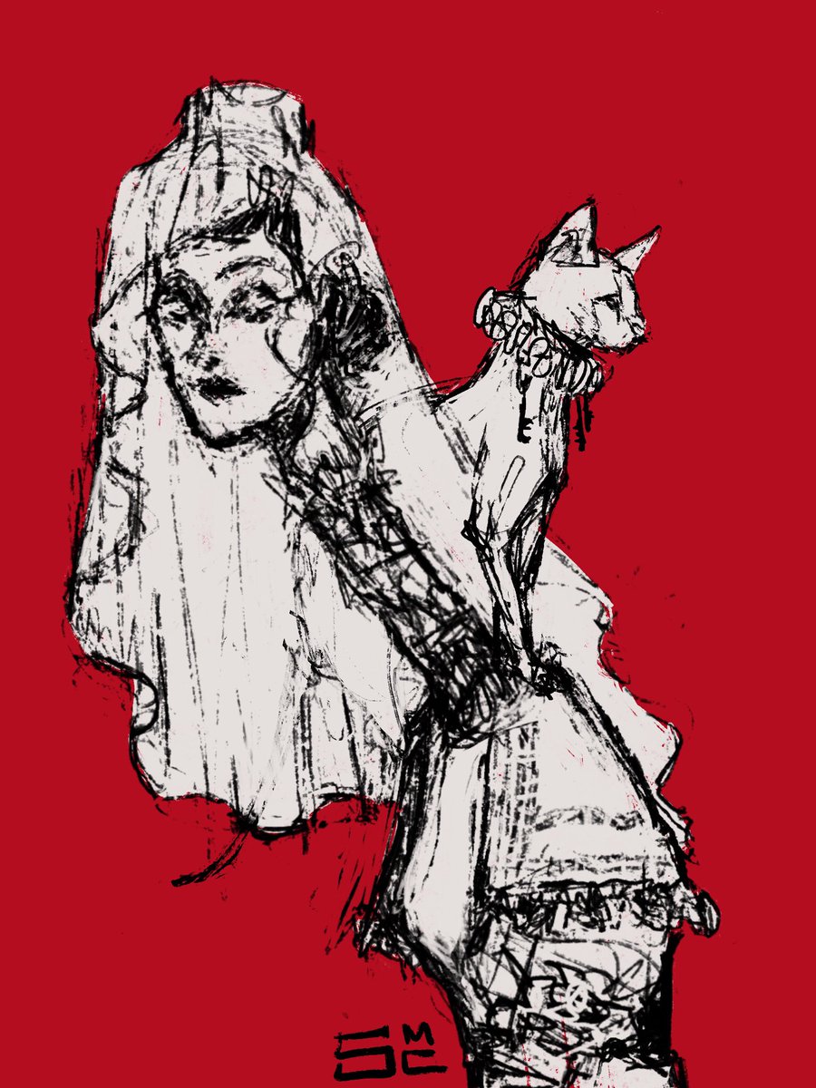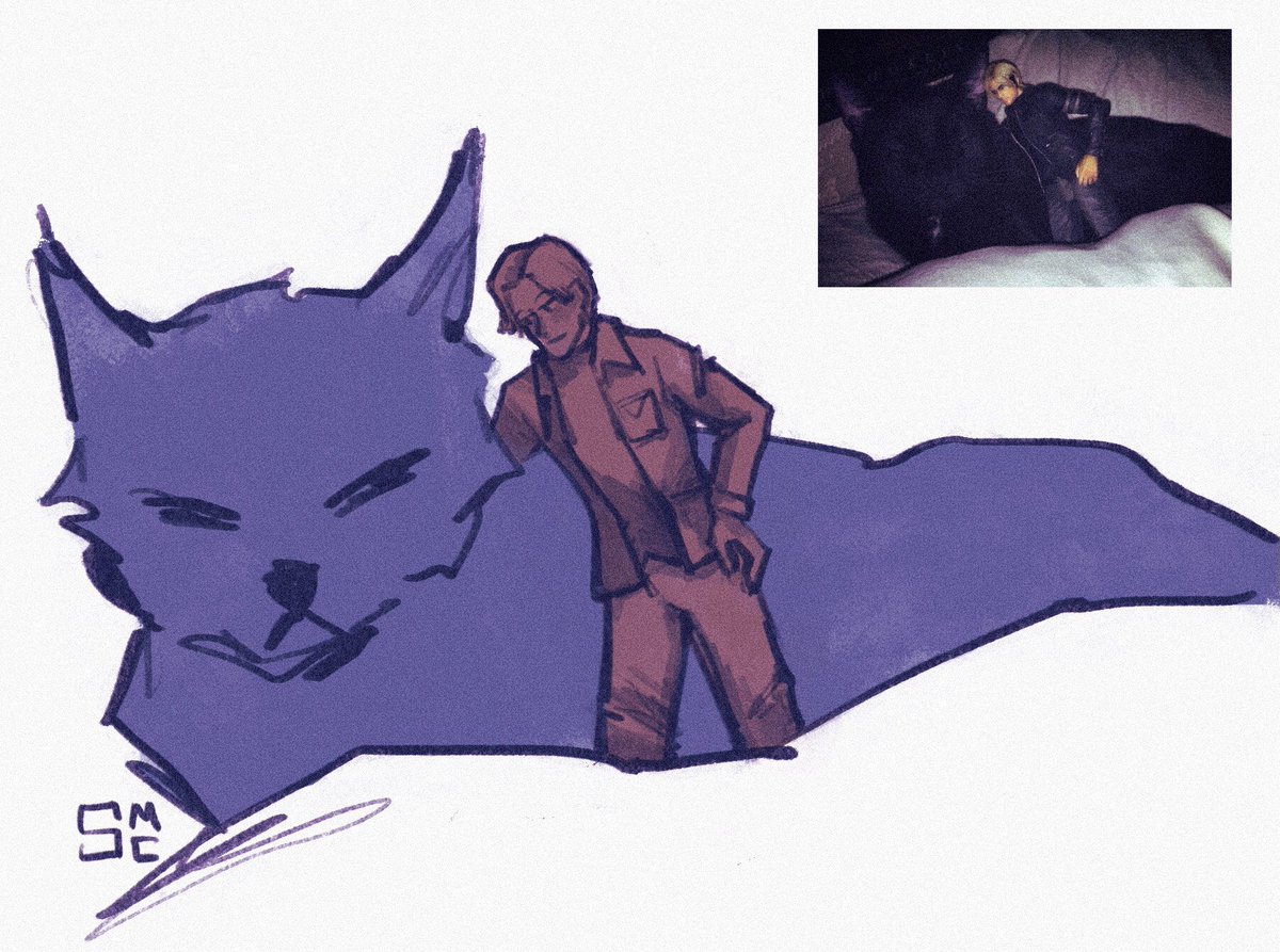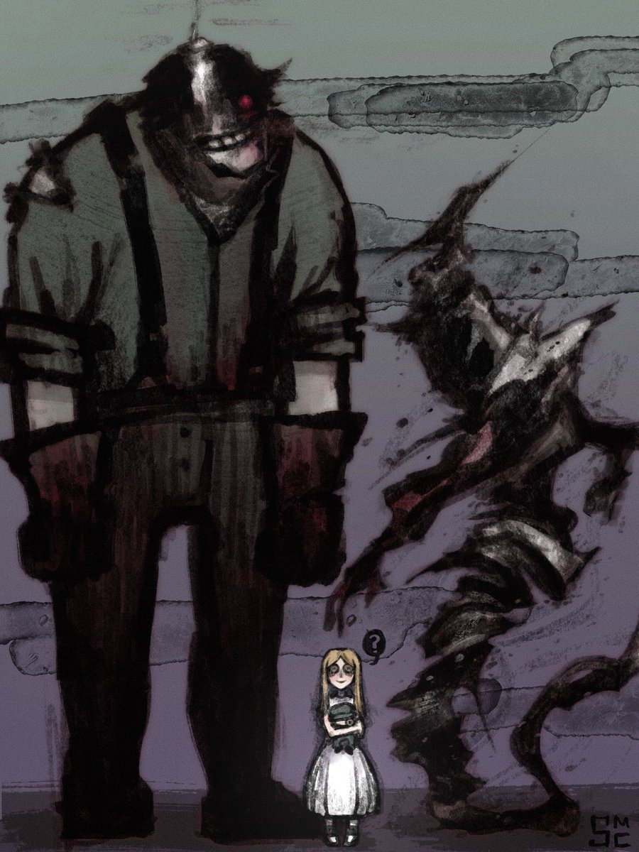 Leon and Pyramid Head chilling with gigantic cats I had to draw it #ResidentEvil #SilentHill