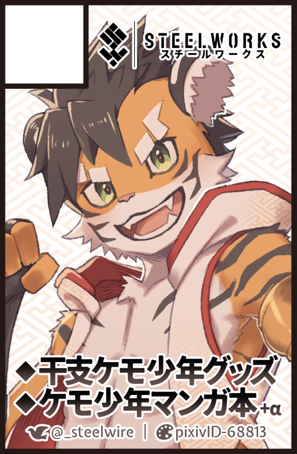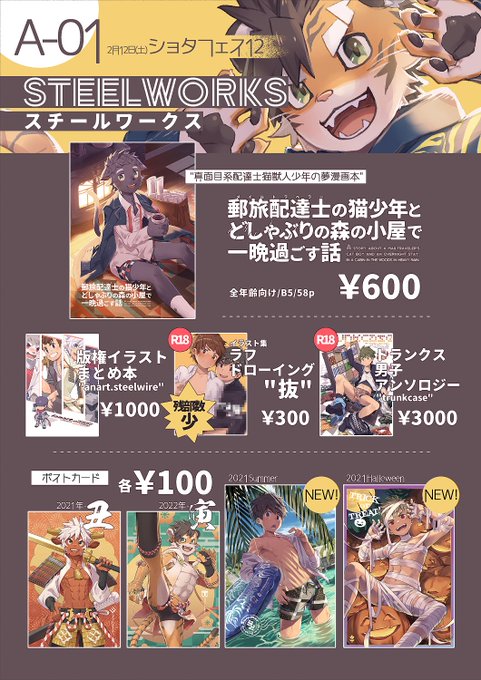 #けもケット12 【N-02:スチールワークス】のお品書きです📝 新刊と干支ケモ男子のポスカと既刊持っていきますよろしくね!また今回、向葵さん(@ v_Apii)の作品も委託頒布するのでそちらもよろしくお願いします🐾 twitter.com/v_Apii/status/…